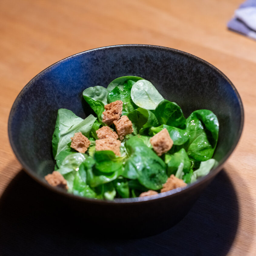 Davor, oder dazu, ein grüner Salat oder Feldsalat mit „Kracherle“.