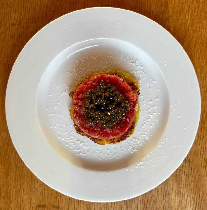 Kartoffelrösti mit handgeschnittenem Tatar und Kaviar